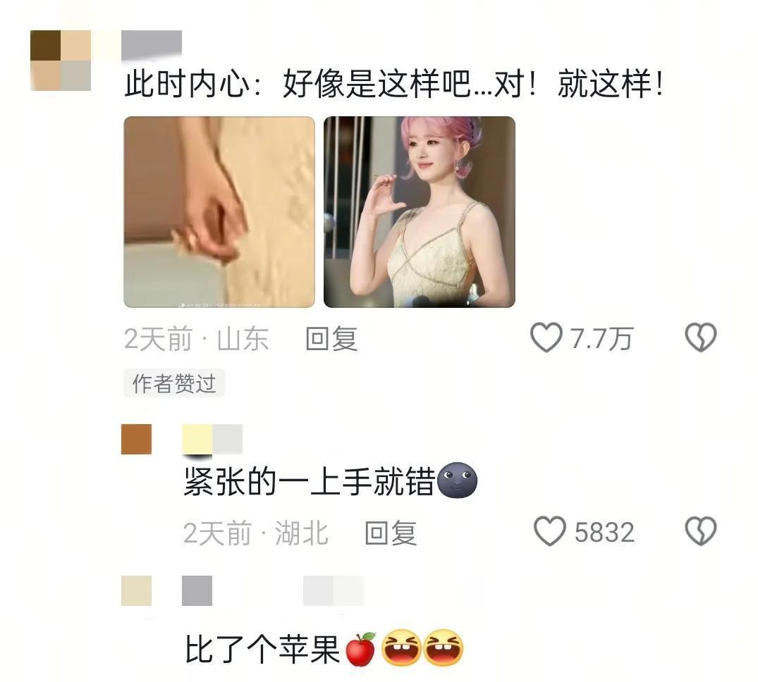 赵丽颖夷犹半天比了个苹果的这段在抖音上火了,网友纷繁在驳斥区留言。哈哈哈网友们皆好有梗呀,我还是要笑死在驳斥区里了!接下来让咱们沿路望望网友留言吧!
