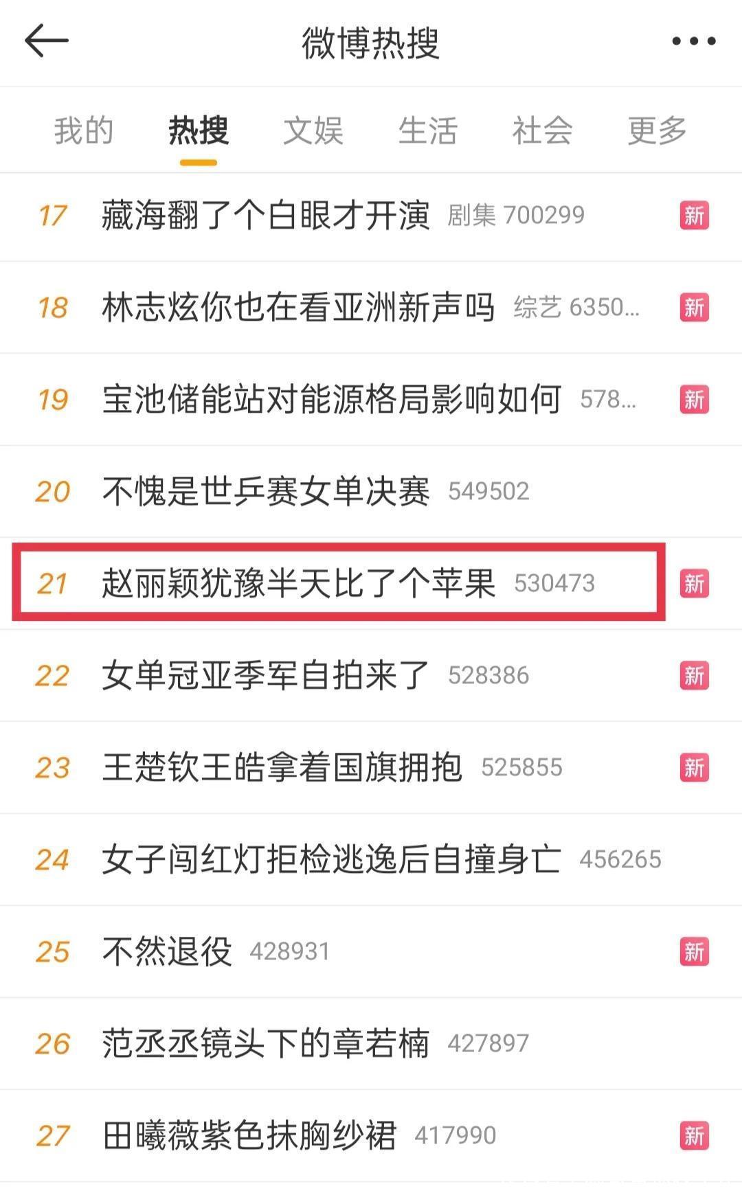 笑麻了!赵丽颖夷犹半天比了个苹果冲上热搜博彩平台网址大全,我却要笑死在网友的驳斥区里了!